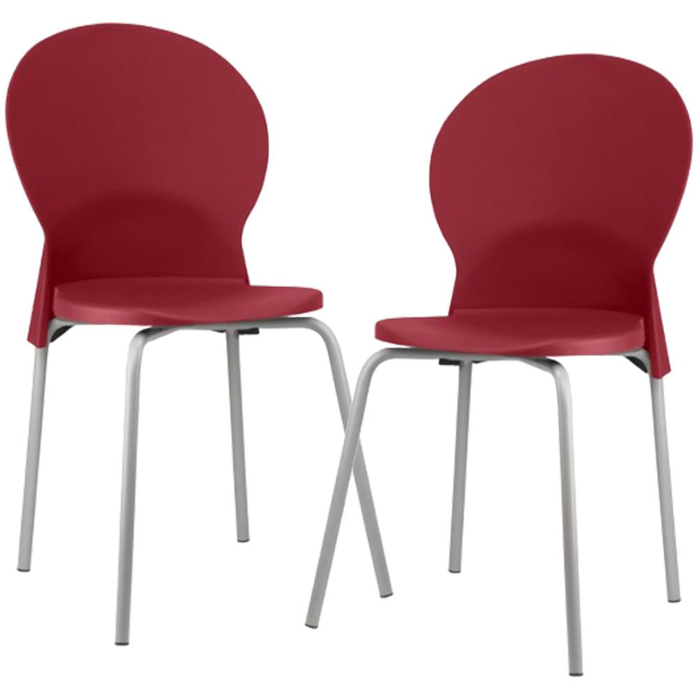 Material do encosto e assento injetado em Polipropileno (PP) 100% reciclável, na tonalidade Vermelho.