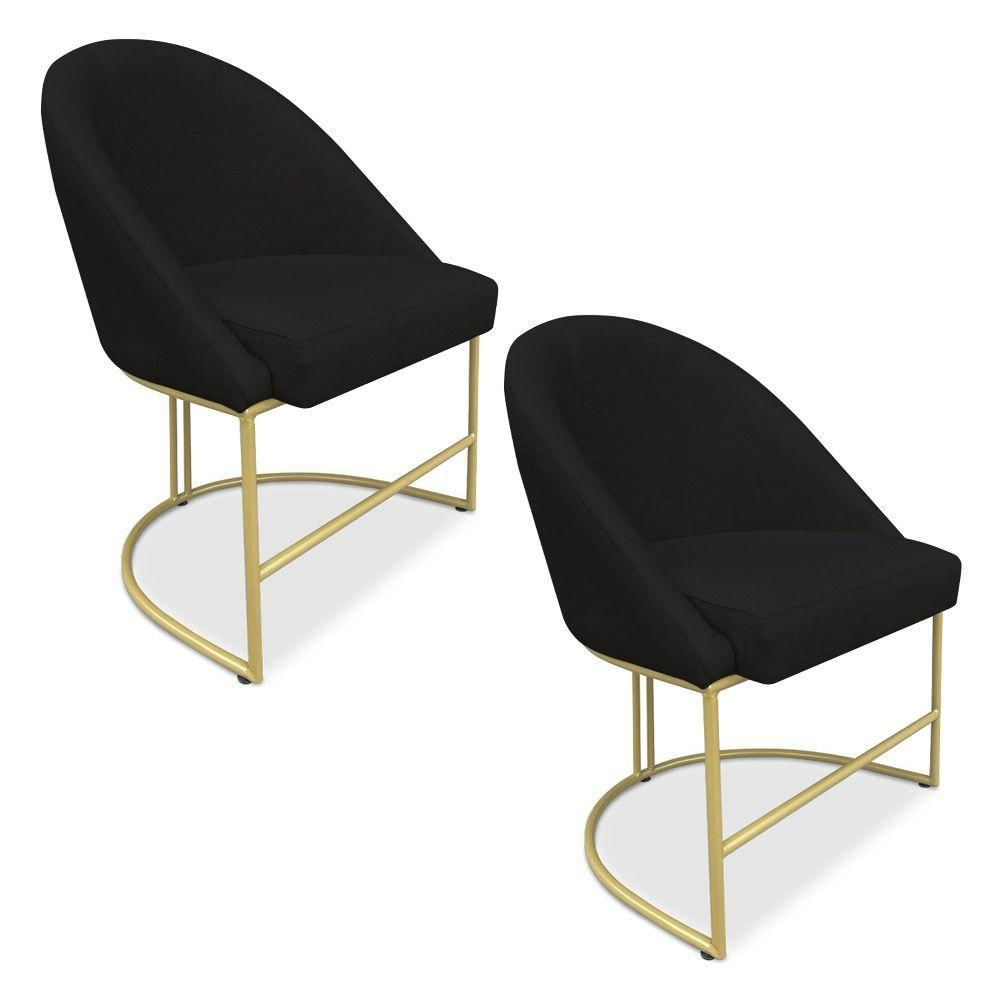 Kit 02 Cadeiras Poltrona De Jantar Bela Base Metálica Industrial Dourado Sala Recepção Veludo Preto Do Lar Móveis