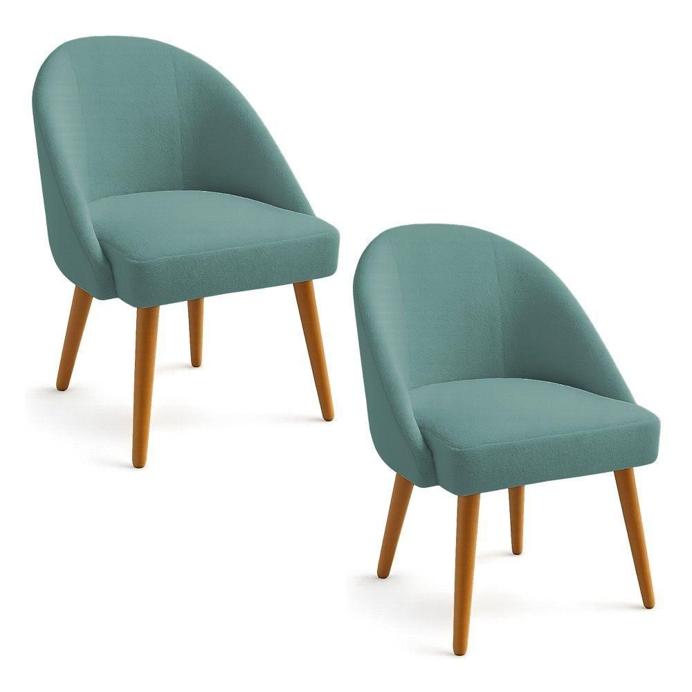 Kit 02 Cadeiras Poltrona De Jantar Estofada Luna Boucle Azul Majestic Pés Palito Castanho - Pallazio