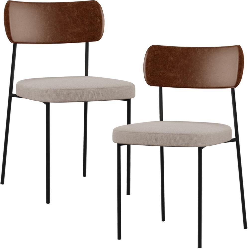 Kit 02 Cadeiras Estofadas Para Sala De Jantar Melina L02 Couríssimo Marrom Linho Bege - Lyam Decor