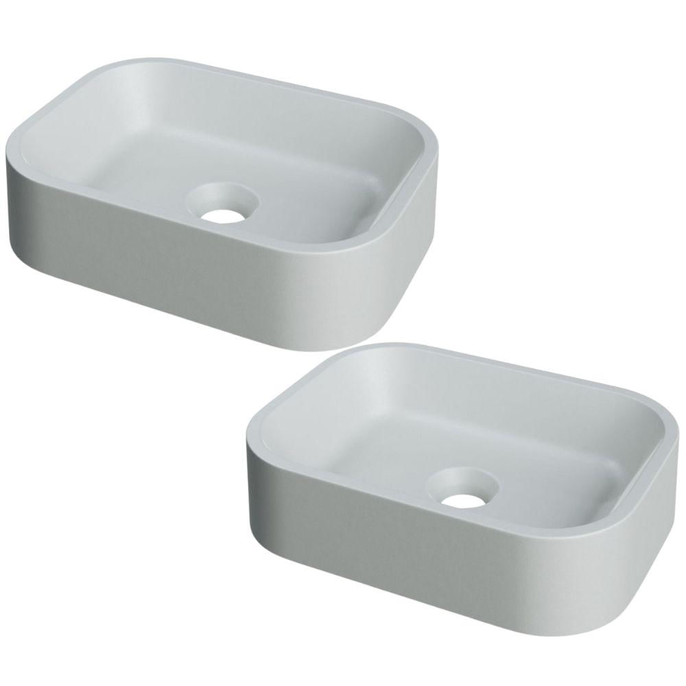 Kit 02 Cubas de Apoio Retangular Para Banheiro Lavabo C01 BR37W Cinza Matte Fosca - Lyam