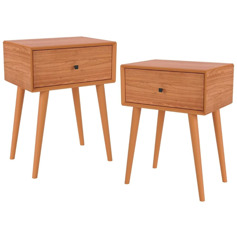 Características: Estrutura em 100% MDF 18mm, gaveta 15mm. Peça na tonalidade Freijó com acabamento em pintura UV. 01 gaveta com corrediças e puxador metálico. Pés palito em madeira. Suporta até 10 kg distribuídos cada, conforme manual.