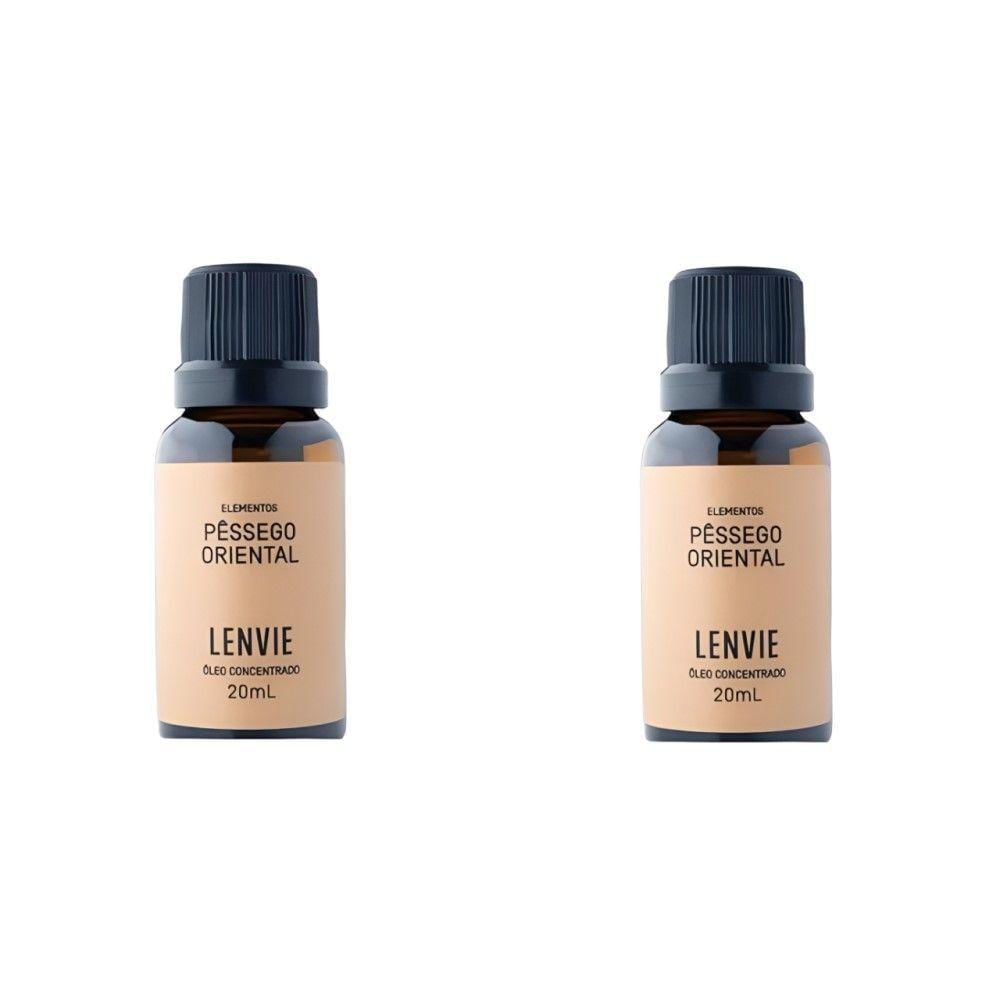 Kit 02 Óleos Concentrado Pêssego Oriental 20ml LenvieO Óleo Concentrado Pêssego Oriental 20 ml é a escolha ideal para perfumar qualquer ambiente. Especialmente desenvolvido para uso em espaços diversos, ele transforma seu ambiente em um verdadeiro refúgio de aconchego. Pêssego Oriental traz o Pêssego como protagonista, com sua doçura suculenta e toque aveludado. As notas de saída trazem a frescura da Mandarina e Nectarina, combinada com a suavidade da Pêra. O coração mistura pétalas de Muguet com Framboesa e Caju, enquanto a base revela a sofisticação das madeiras cremosas e a suavidade do Musk. O kit é composto por dois óleos de 20ml cada.Kit 02 Óleos Concentrado Pêssego Oriental 20ml Lenvie - Modo de UsarAplique o produto utilizando o conta-gotas em difusores elétricos, potpourri, folhas secas e cerâmicas porosas para perfumação. Aplique de 10 à 15 gotas (1 ml = 20 gotas).Kit 02 Óleos Concentrado Pêssego Oriental 20ml Lenvie - Perfil OlfativoFrutal, Floral Notas de Saída: Mandarina, Pêra, Nectarina Notas de Corpo: Caju, Pêssego, Framboesa, Muguet Notas de Fundo: Cedro, Musk, Sândalo