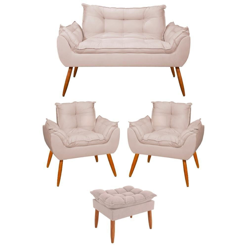 Transforme o seu ambiente com o Kit 2 Poltronas + 1 Namoradeira + 1 Puff Opala. Este kit é a combinação perfeita de conforto, durabilidade e um design moderno, ideal para mesas de jantar, áreas de estar e até mesmo ambientes comerciais. Especificações do produto Tecido em Suede, 100% poliéster Espuma D-23 com Alta densidade Percintas Elásticas que oferecem suporte adicional Estrutura de madeira eucalipto proveniente de reflorestamento Informações Técnicas da Poltrona Altura: 87 cm Largura: 85 cm Profundidade: 64 cm Peso: 15 kg Capacidade de Suporte: A poltrona suporta até 130 kg, e a namoradeira suporta até 160 kg