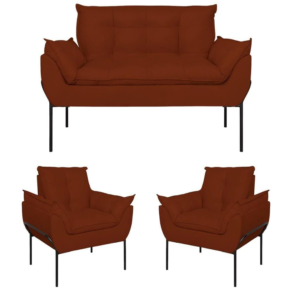 Kit 02 Poltronas + Namoradeira Reforçada Opala Metal Preto Terracota