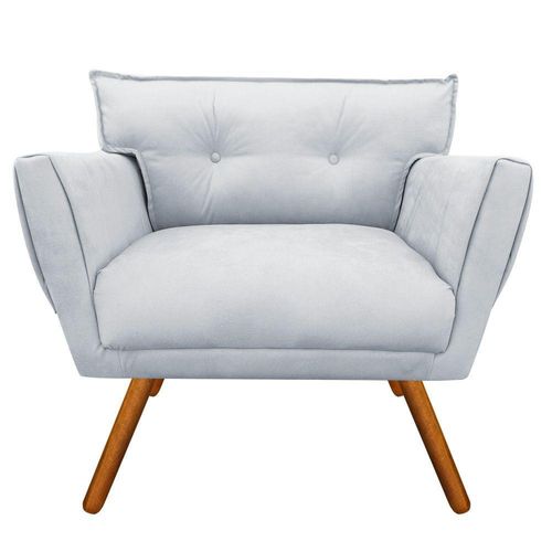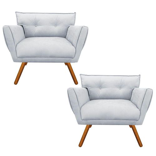 Kit 02 Poltronas Anitta Suede Cinza Pés Palito Castanho Drossi