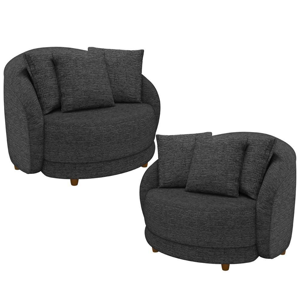 Kit 02 Poltronas Decorativa Sala De Estar Base Fixa De Madeira Witta M03 Linho Chumbo