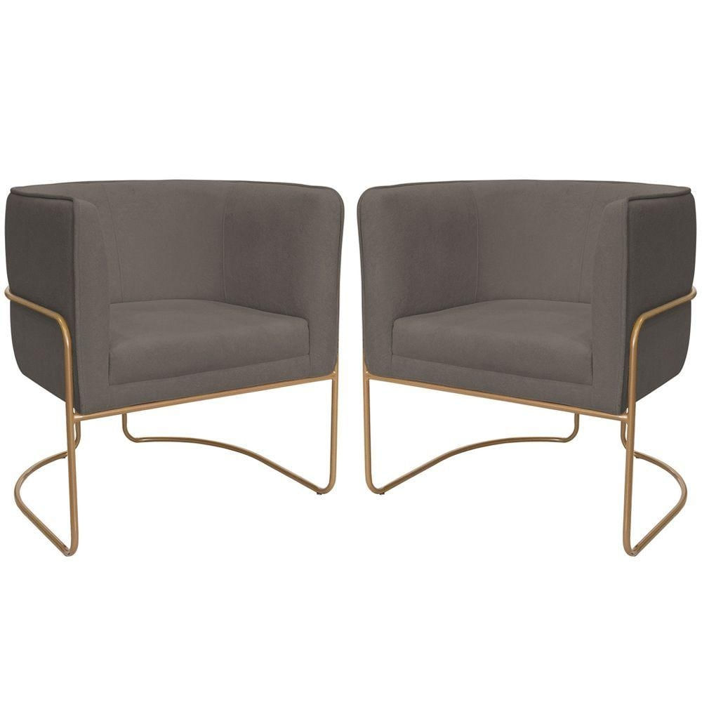Kit 02 Poltronas Decorativas Betina Base Aço Ouro Fosco Bouclé Marrom - Nexta Casa