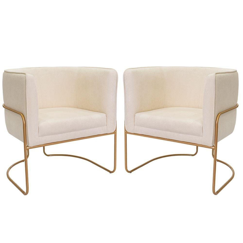 Kit 02 Poltronas Decorativas Betina Base Aço Ouro Fosco Bouclé Off White - Nexta Casa