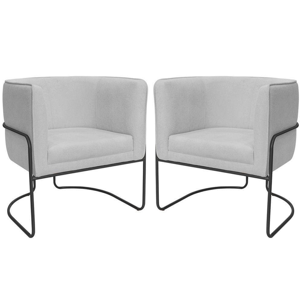 Kit 02 Poltronas Decorativas Betina Base Aço Preto Bouclé Cinza Claro - Nexta Casa