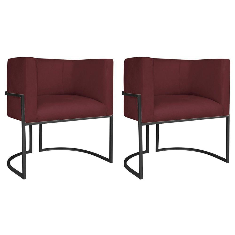 Kit 02 Poltronas Decorativas Luna Base De Ferro Preto Suede Bordô