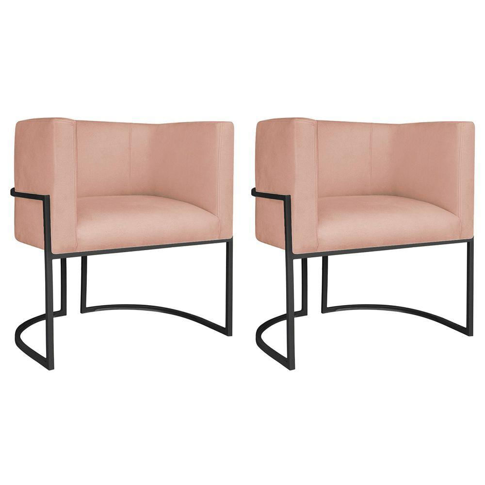 Kit 02 Poltronas Decorativas Luna Base De Ferro Preto Suede Rosê