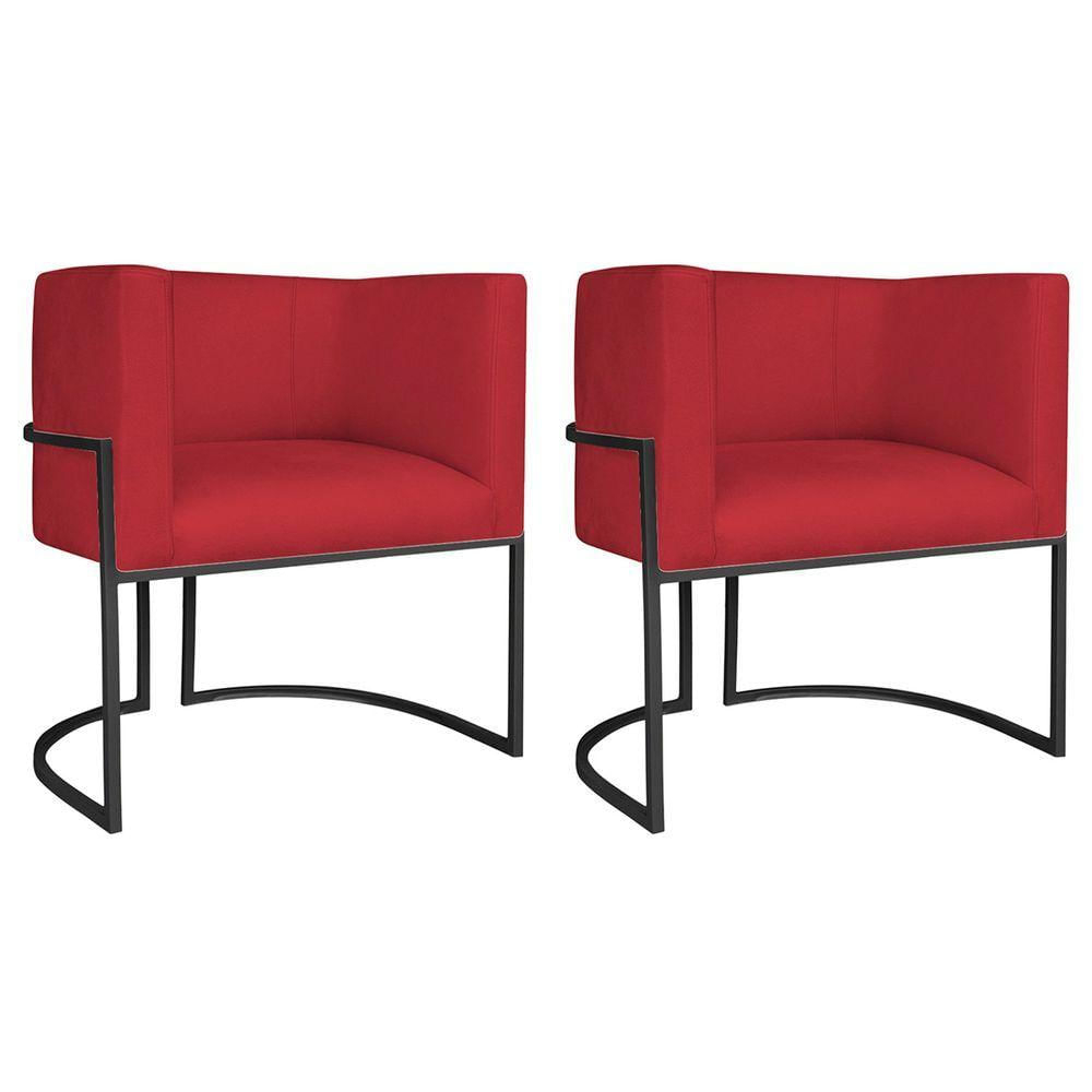 Kit 02 Poltronas Decorativas Luna Base De Ferro Preto Suede Vermelho