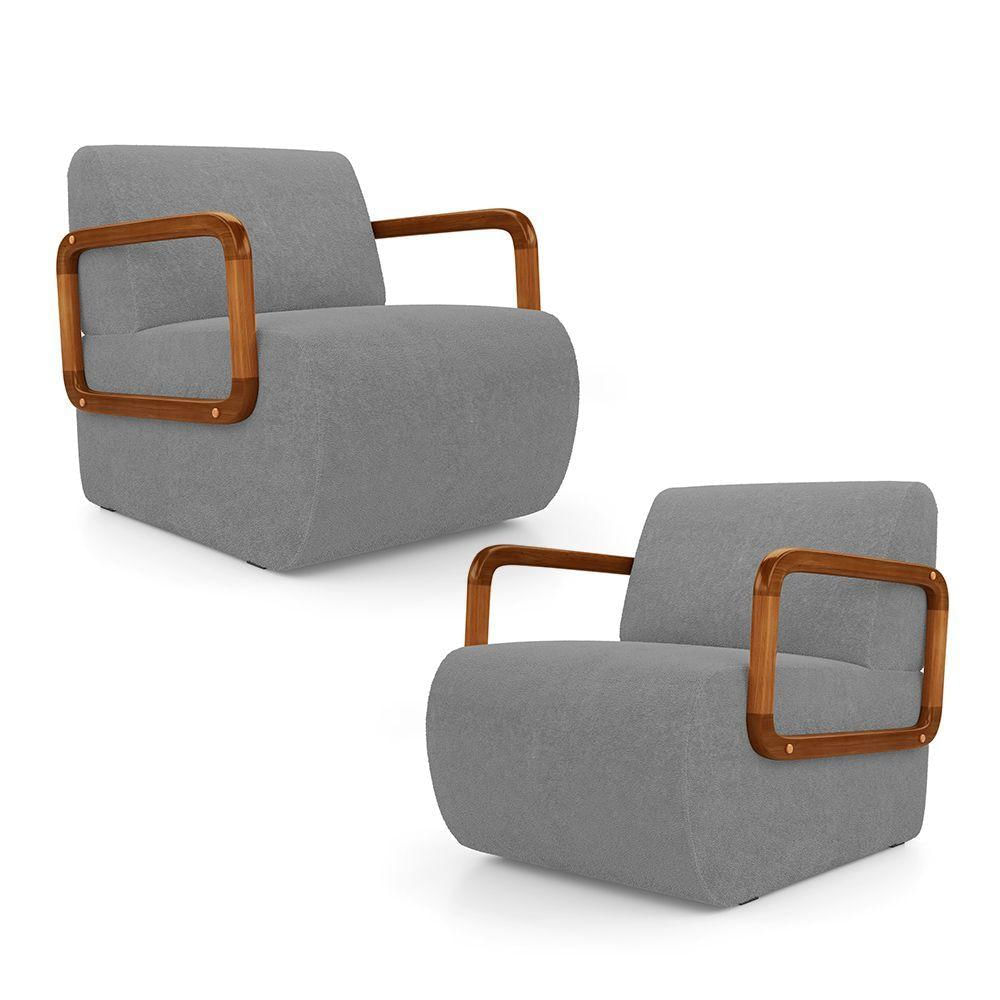 Kit 02 Poltronas Decorativas Orgânica Living Kavya Bouclê Cinza - Desk Design