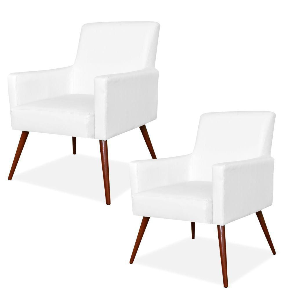 Kit 02 Poltronas Decorativas Para Sala de Estar e Recepção Maria W01 Pés Palito Corino Branco - Lyam Decor