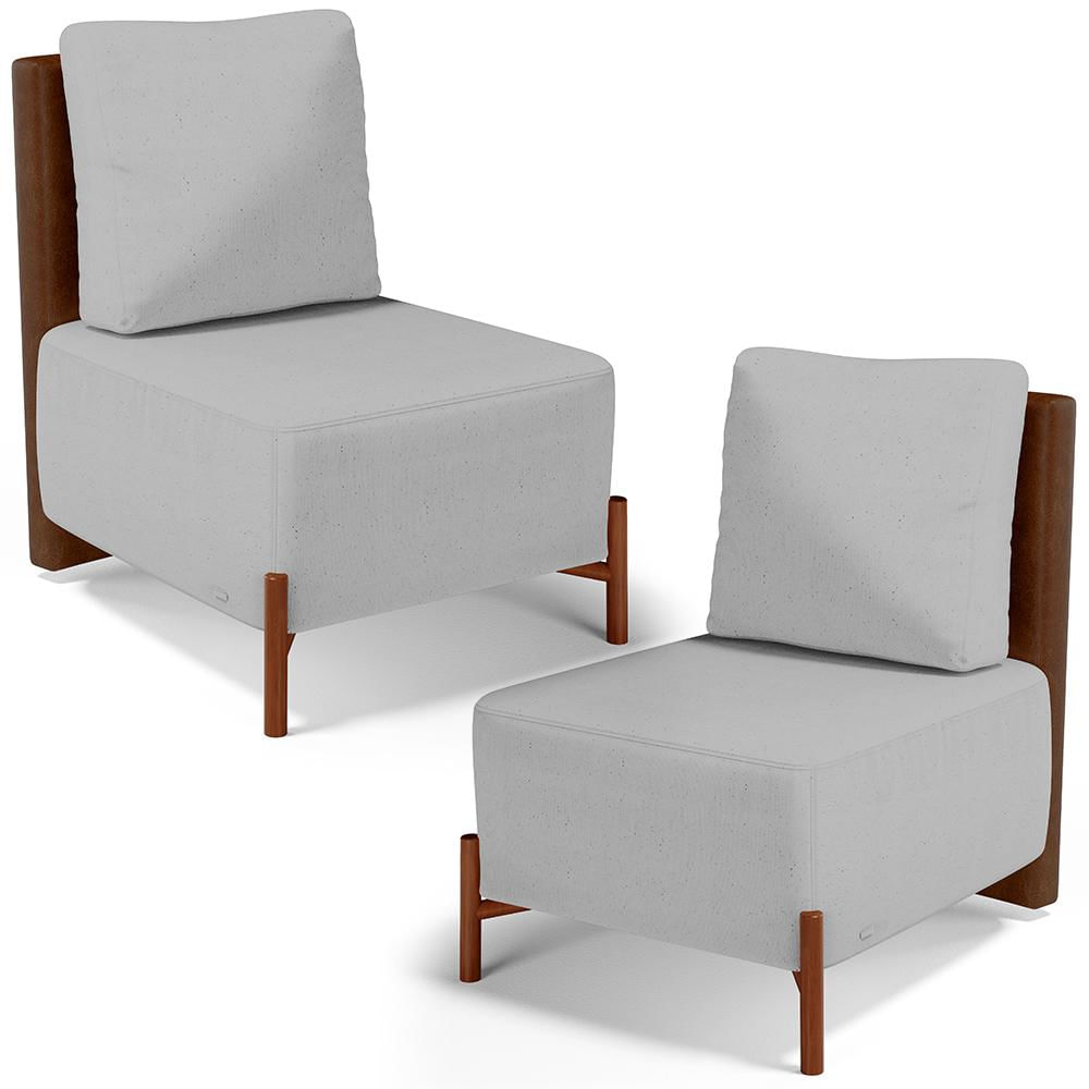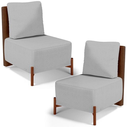 Kit 02 Poltronas Decorativas Sala de Estar Living Hungria L02 Couríssimo Marrom Linho Cinza - Lyam