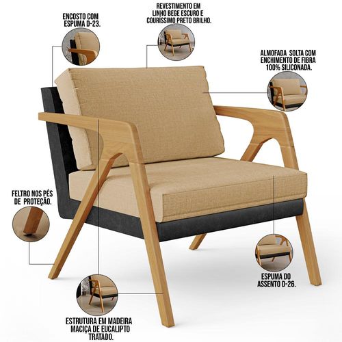 O Kit 02 Poltronas Decorativas Sala Estar Pietra L02 Couríssimo Preto Linho Bege Escuro - Lyam Decor se sobressai em qualquer ambiente, permite diversas combinações harmônicas e ainda proporciona muito aconchego para sua decoração! O link da estrutura de madeira com a composição de revestimentos em linho e couríssimo, somados ao seu design geométrico garantem extrema originalidade, além de expressar toda a elegância que ele possui.