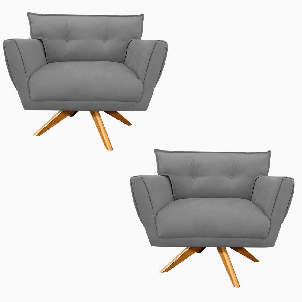 Kit 02 Poltronas Giratória Anitta Suede Base Madeira Grafite