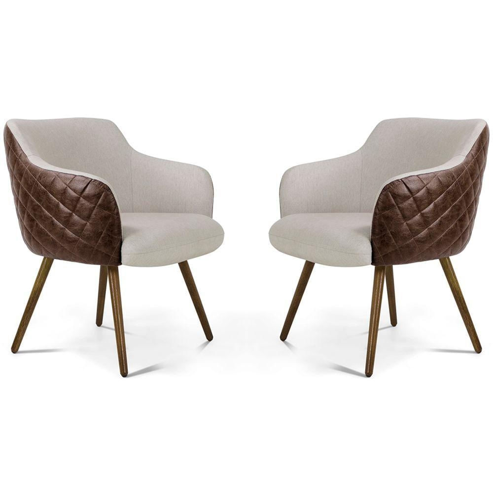 Kit 02 Poltronas Jade Tressê Pés Palito Corano Rústico Marrom/linho Cru - Nexta Casa