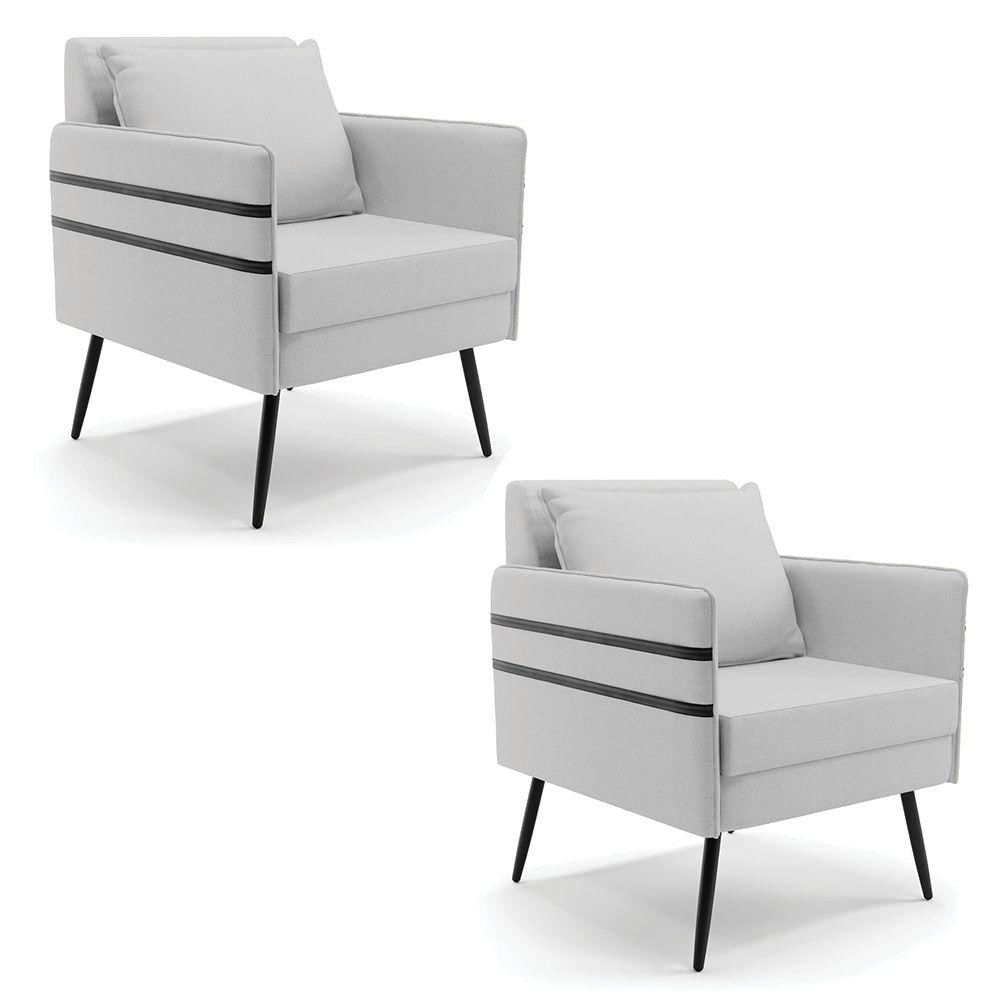 Kit 02 Poltronas Linho Cinza A05 Pés Palito De Ferro Preto