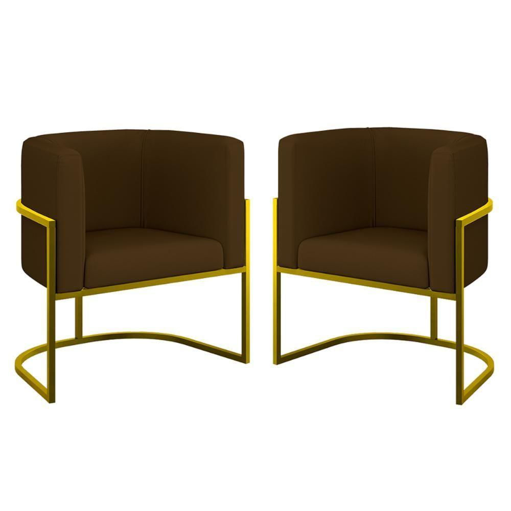 Kit 02 Poltronas Lua Sala Decorativa Base Ferro Gold Corino Marrom