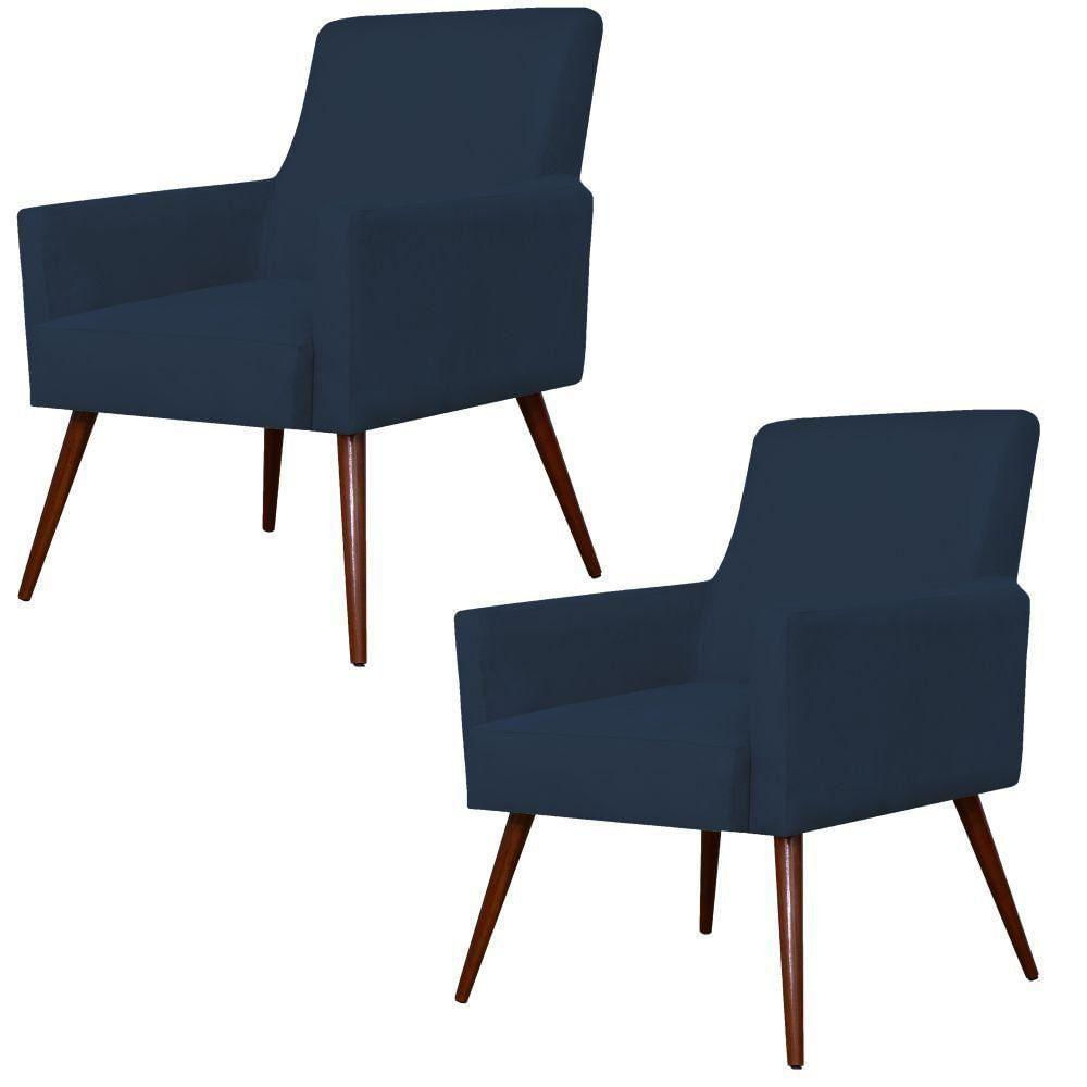 Kit 02 Poltronas Decorativas Para Sala De Estar E Recepção Maria W01 Suede Azul Marinho - Lyam Decor Descrição do produto: A Poltrona Decorativa Maria é essencial para a valorização da sua sala de estar, escritório, recepção ou até área de lazer. Aconchego é o que não vai faltar no seu ambiente! Estruturada com materiais de qualidade e revestida em tecido resistente de durabilidade garantida. Ela vai te conquistar, leve agora a sua!Dimensões do produto (L x A x P) 61 x 84 x 59 cmAltura do chão ao assento: 42 cm Altura do encosto: 46 cm Profundidade do assento: 50 cm Altura dos Pés: 30 cm Largura do assento: 47 cmCaracterísticas: Estrutura em madeira de reflorestamento de eucalipto, pinus e MDF; Revestimento em Suede Azul Marinho de alta qualidade; Design inovador; Assento com espuma D-26; Encosto com espuma D-18; Braço com espuma D-23; Percinta elástica 50mm; Peso suportado: Até 120 kg; Pés Palito;- Por se tratar de estofado as medidas podem ter uma pequena variação de até 3 cm. - A tonalidade do produto real poderá ter ligeira variação devido o lote de tecidos.Observações importantes: - Produto para uso residencial em ambiente interno, não devendo ficar exposto diretamente ao sol, calor e umidade excessivos. - Pode haver alguma diferença de tonalidade entre a imagem e o produto real, por conta do tratamento de imagens e a calibração de cores do seu monitor. - As imagens são meramente ilustrativas, não acompanham objetos de decoração e eletrônicos. - Ao receber a mercadoria, o cliente deve verificar as condições da embalagem, caso haja alguma avaria não assine o comprovante de recebimento. - Montagem, desmontagem e outras instalações serão de responsabilidade do cliente. Não nos responsabilizamos, no ato da entrega, por subir escadas/elevadores ou pelo transporte por guincho em apartamentos. Eventuais despesas são de responsabilidade do comprador. - Confira as dimensões do produto e certifique-se de que passará normalmente por supostos elevadores, portas, escadas e/ou corredores de sua residência. Altura Montado: 84 | Largura Montado: 61 | Profundidade Montado: 59