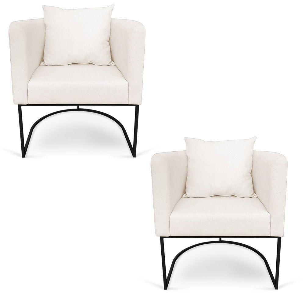 Kit 02 Poltronas Paola Linho Areia A27 Base Metálica Preto