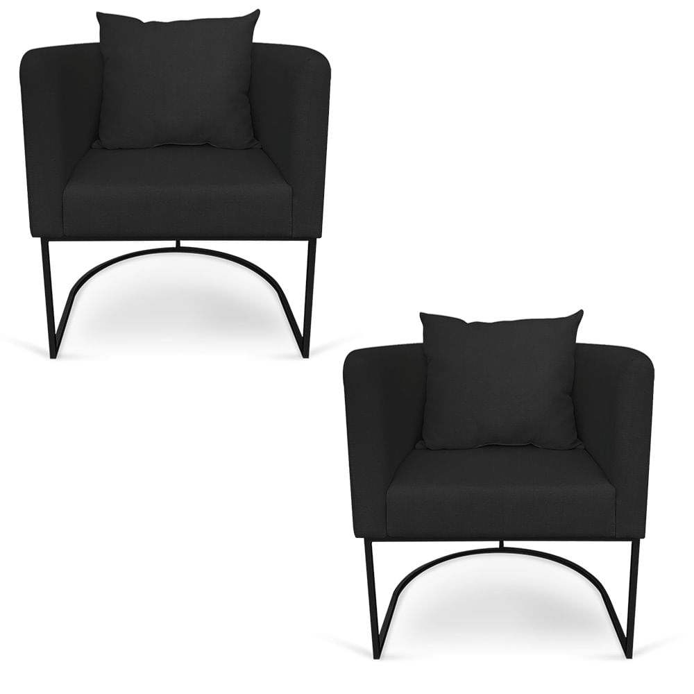 Kit 02 Poltronas Paola Linho Preto A79 Base Metálica Preto - D'Rossi