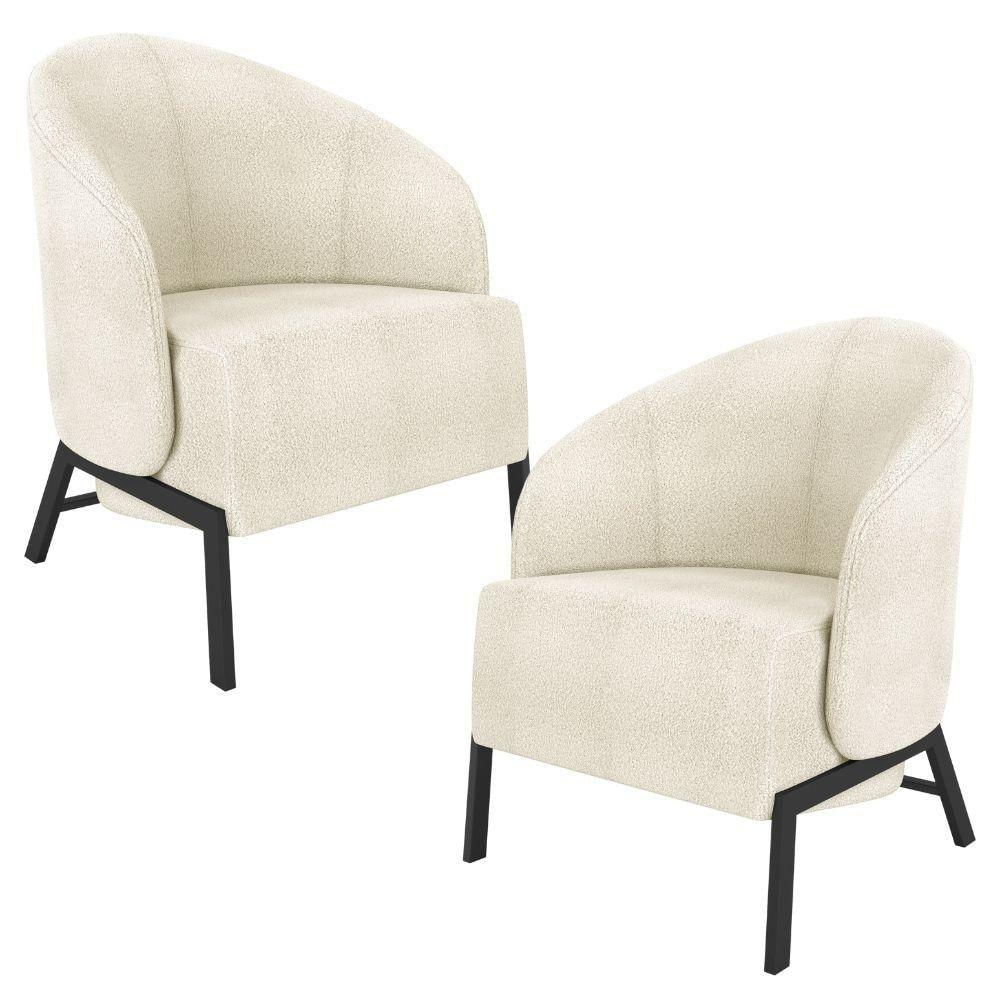 Kit 02 Poltronas Para Sala Living Pés Industrial Sierra K01 Bouclê Bege - Lyam Decor