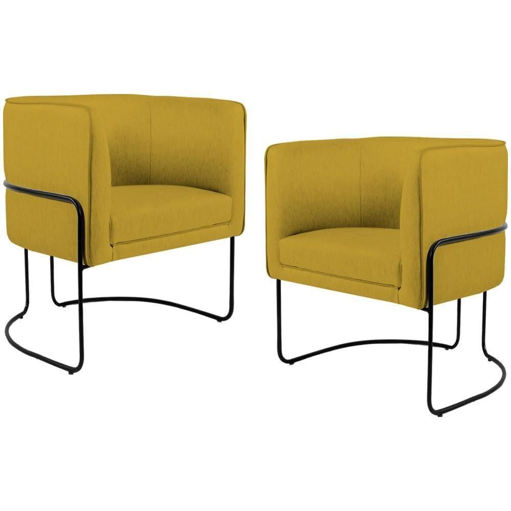 Kit 02 Poltronas Decorativas Fixa Base De Aço Preto Betina D02 Veludo Mostarda C-279 - Lyam Decor O Kit 02 Poltronas Decorativas Fixa Base de Aço Preto Betina D02 Veludo Mostarda C-279 - Lyam Decor exala formosura e elegância! Excelente opção para dispor em sua sala de estar ou espera, recepção, hall de entrada, dormitório, qualquer área de circulação ou antessala entre um cômodo e outro, as possibilidades de combinação são infinitas. Seu protagonismo é notório, sem sombra de dúvidas é perfeita para qualquer ambientação que desejar colocá-la. Com sua resistente estrutura em aço, na cor Preto, o encosto e assento revestidos em veludo, deixarão sua decoração ainda mais sofisticada. Oferecendo máximo conforto sem deixar de transmitir todo a magnitude que seu lar merece!Dimensões do produto (L x A x P) 70 x 76 x 60 cmMedidas Internas: Altura do Assento: 13 cm Profundidade Livre do Assento: 47 cm Largura do Assento: 47 cm Altura livre do Encosto: 30 cm Largura do braço: 8 cm Altura do braço: 43 cm Altura dos pés: 30 cmCaracterísticas: Estrutura em madeira reflorestada de eucalipto; Partes em MDF e OSB; Revestimento em Veludo; Assento Fixo com espuma D-28 Sobre Percintas elásticas; Encosto Fixo com espuma D-23 Sobre Percintas elásticas; Braço Espuma D-23; Peso suportado: Até 120 kg; Base em aço com acabamento epóxi na cor Preto;- Por se tratar de estofado as medidas podem ter uma pequena variação de até 3 cm. - A tonalidade do produto real poderá ter ligeira variação devido o lote de tecidos.Observações importantes: - Produto para uso residencial em ambiente interno, não devendo ficar exposto diretamente ao sol, calor e umidade excessivos. - Pode haver alguma diferença de tonalidade entre a imagem e o produto real, por conta do tratamento de imagens e a calibração de cores do seu monitor. - As imagens são meramente ilustrativas, não acompanham objetos de decoração e eletrônicos. - Ao receber a mercadoria, o cliente deve verificar as condições da embalagem, caso haja alguma avaria não assine o comprovante de recebimento. - Montagem, desmontagem e outras instalações serão de responsabilidade do cliente. Não nos responsabilizamos, no ato da entrega, por subir escadas/elevadores ou pelo transporte por guincho em apartamentos. Eventuais despesas são de responsabilidade do comprador. - Confira as dimensões do produto e certifique-se de que passará normalmente por supostos elevadores, portas, escadas e/ou corredores de sua residência. Altura Montado: 73 | Largura Montado: 87 | Profundidade Montado: 64