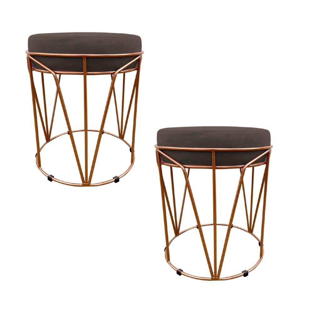 Kit 02 Puff Babu Suede Base Cobre D'Rossi O Puff Babu é inovador e vai deixar o seu ambiente com ar despojado. Demais né? Ele é ideal para áreas abertas ou até mesmo sala de estar, ele não deixará de ser notado pelas suas visitas. Sua estrutura é confeccionada em ferro aço carbono 8 mm, o estofamento do assento é composto de espuma D-23 no assento, e é revestido em tecido de alta qualidade, sua sustentação é dada por sapatas em polipropileno, suportando em média até 100 Kg. Dimensões