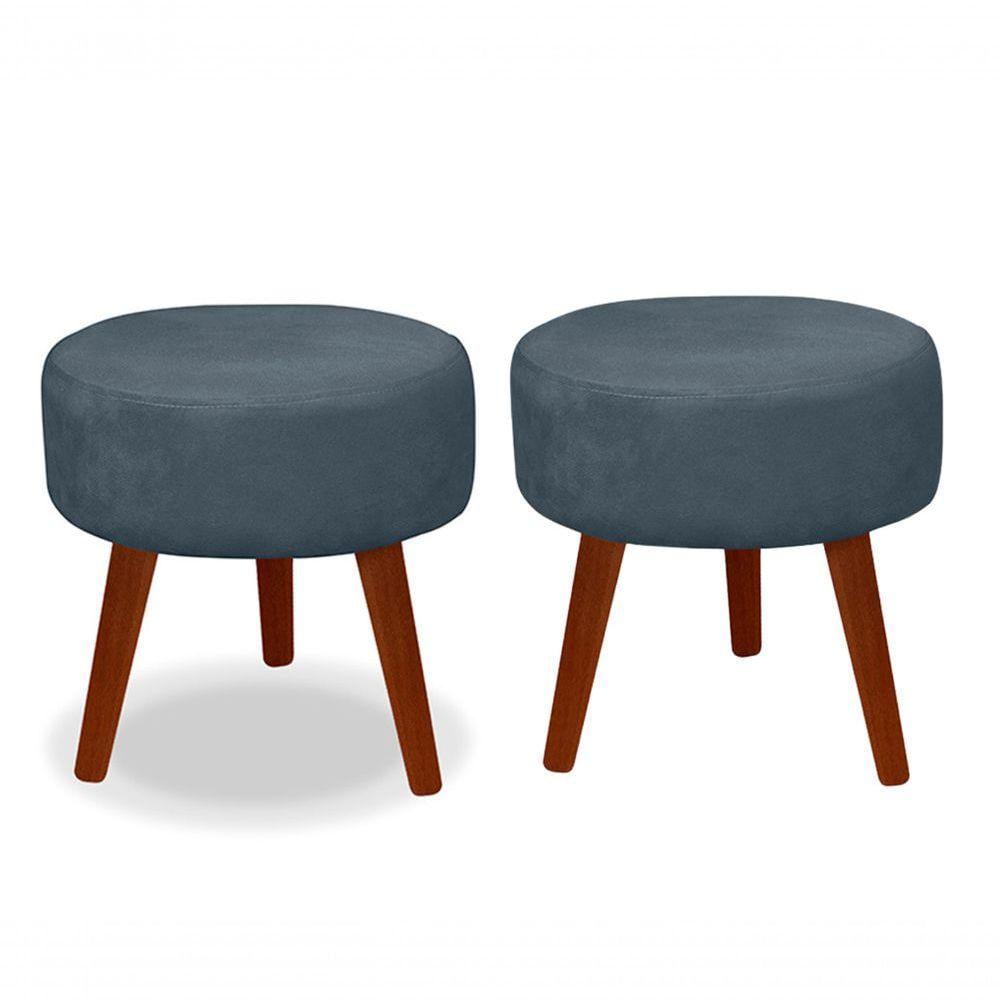 Kit 02 Puff Redondo Decorativo Panqueta De Apoiar Os Pés Suede Azul Turquesa