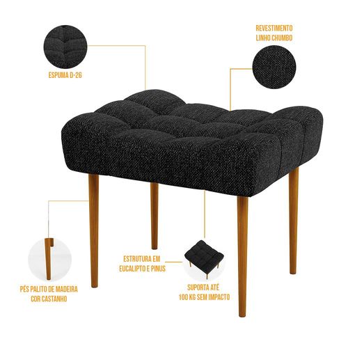 Kit 02 Puffs Decorativo Para Sala De Estar Requinte L02 Linho Chumbo - Lyam Decor