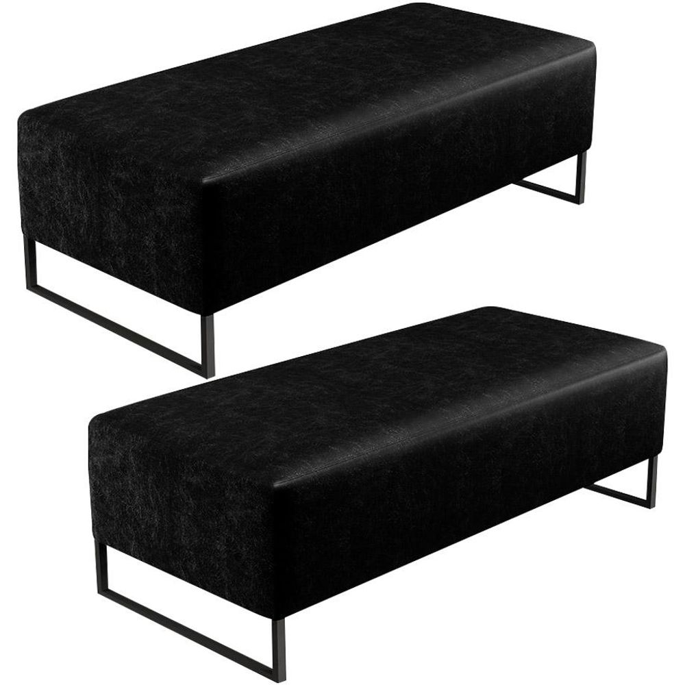 Pensando na praticidade do dia-dia, o Kit 02 Puffs Decorativo Sala de Estar Bali W01 Base Ferro 120x50 cm Couríssimo Preto - Lyam Decor se faz perfeito para a sua ambientação! É extremamente confortável, ideal para quem procura por funcionalidade e beleza embutidos num único produto. Estruturado com espuma macia e de alta densidade e revestimento de excelente qualidade, além de seus belos pés de metal que arrematam muito bem toda a composição deixando-o ainda mais elegante.