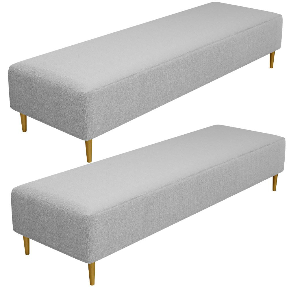 Kit 02 Puffs Decorativo Sala de Estar Bali W01 Pés Palito 210x60cm Bouclê Cinza - Lyam Decor