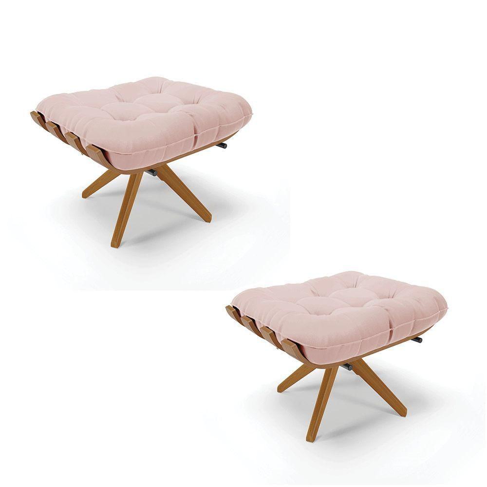 Estrutura:Madeira Tauari com Base de Madeira 25 cm Tecido:Veludo Peso suportado:Até 120 Kg Garantia:90 dias contra defeito de fabricação Montagem:O produto vai montado Instruções de limpeza:Utilizar um pano limpo e levemente úmido Você irá receber:02 Volumes com 02 Puffs