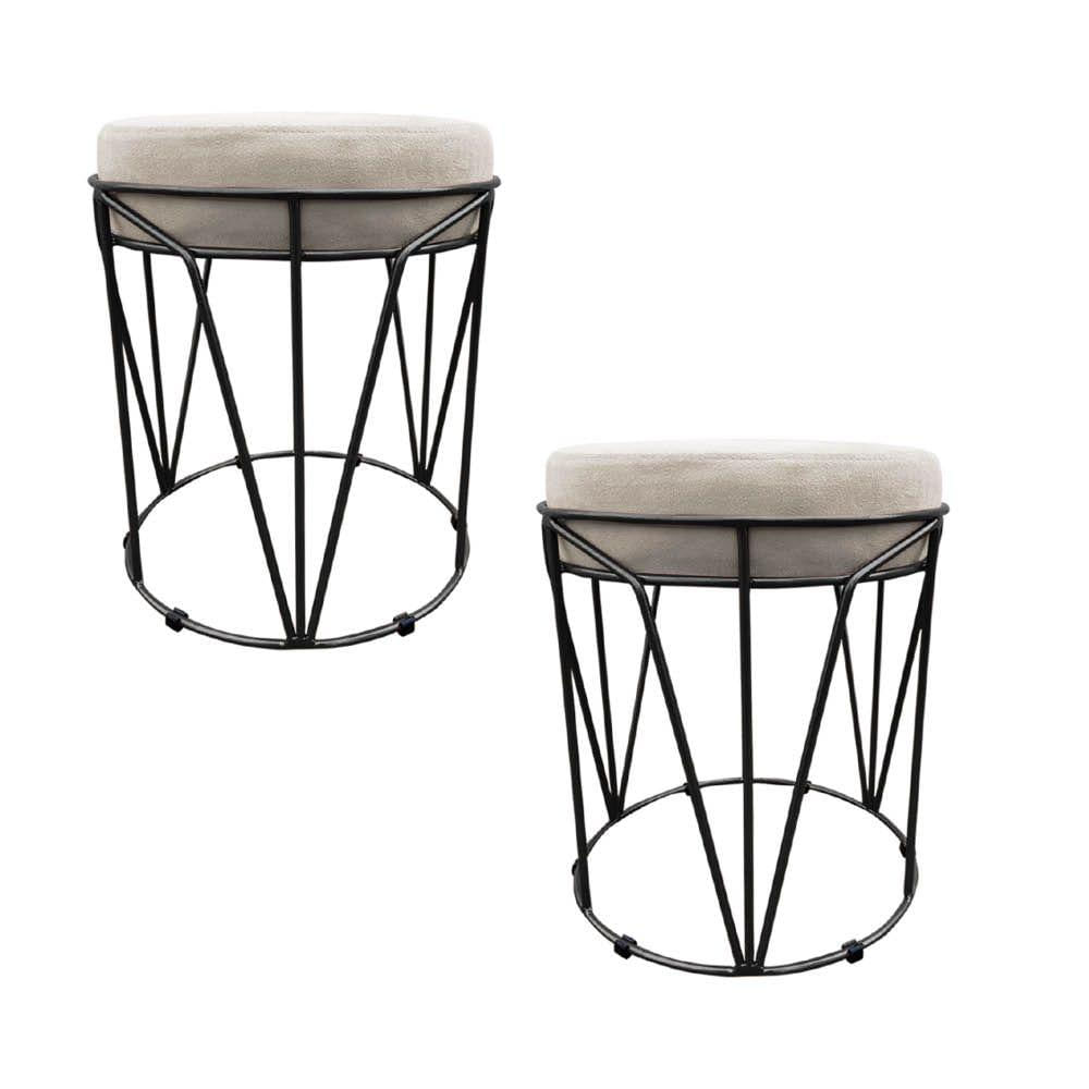 Kit 02 Puffs Multiuso Com Mesa Babu 2 Em 1 Suede Bege Base Preto - D'rossi