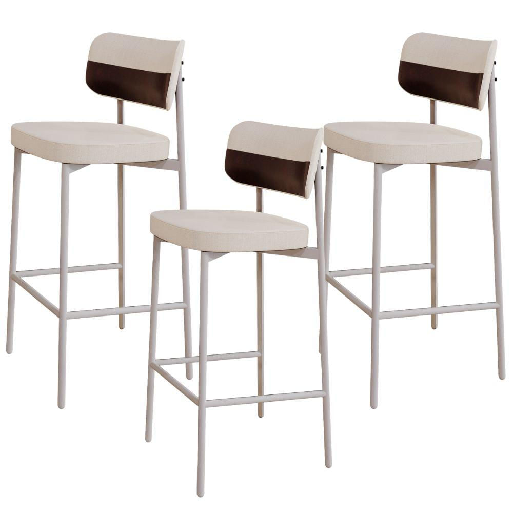 Kit 03 Banquetas Alta Bar Cozinha Sala De Jantar Aço Branco Kaira C01 Linho Palha Courino Café - Lyam Decor