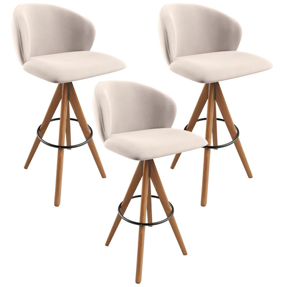 Kit 03 Banquetas Alta Bar Cozinha Sala de Jantar Bar Mia L02 Suede Bege - Lyam Decor