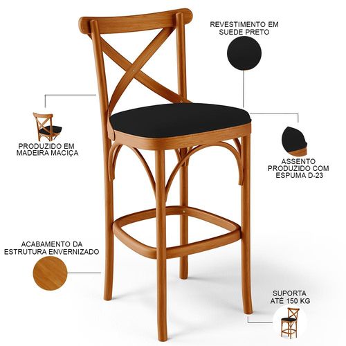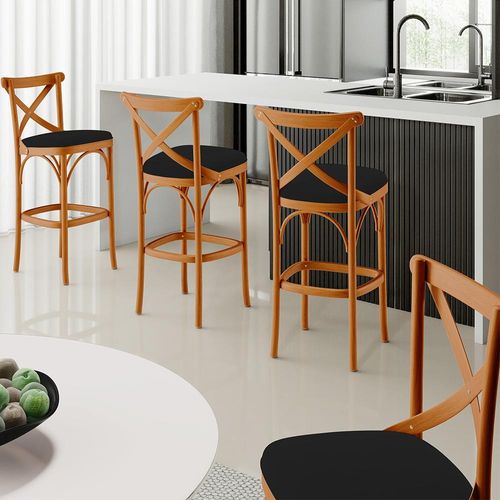Kit 03 Banquetas Altas Cozinha Bancada Bar Sala de Jantar Estofada Ávila L02 Suede Preto - Lyam