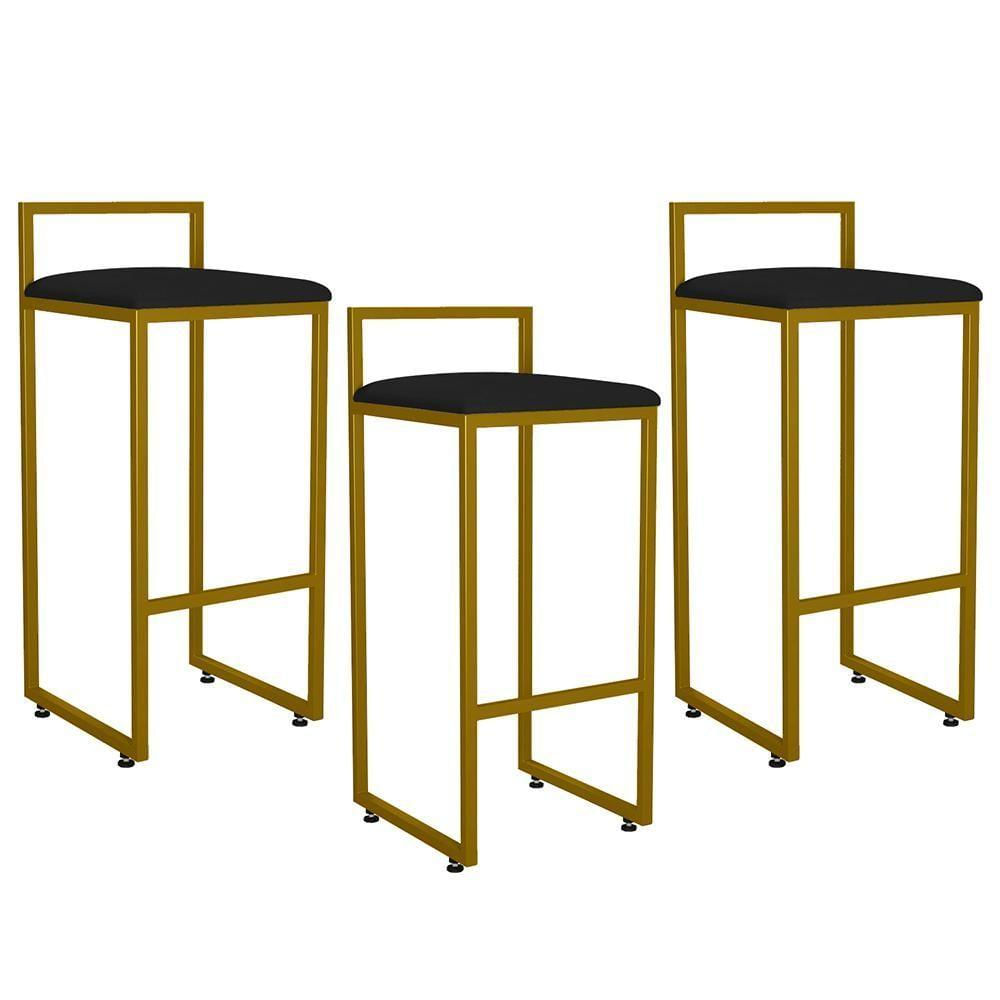 Kit 03 Banquetas Altas Cozinha Hanna L02 Dourado Preto