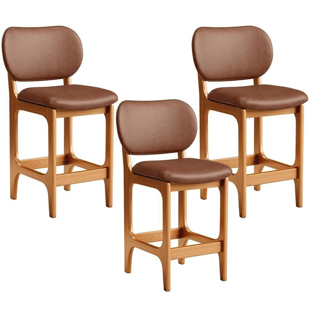Amplamente sofisticada, o Kit 03 Banquetas Baixa Bar Cozinha Sala Jantar Betta L02 Imbuia Couríssimo Marrom - Lyam Decor irá agregar ainda mais valor em sua decoração!! Sendo capaz de compor muito bem o ambiente, é produzida com materiais de excelente qualidade, a resistente estrutura em madeira de Taeda, na cor imbuia, conta com apoio para os pés (que garante maior segurança), além do assento e encosto estofados super confortáveis e convidativos, que são revestidos em tecido Couríssimo, composição extremamente elegante.