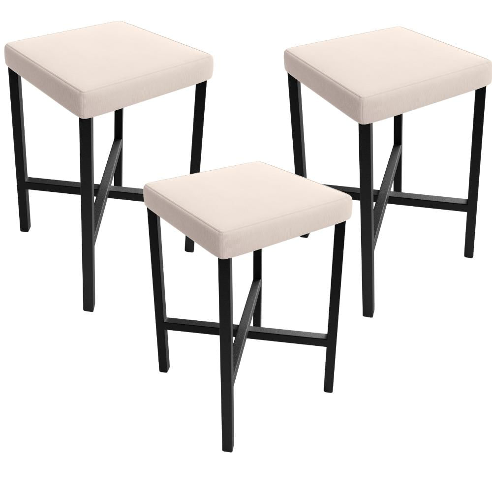 Kit 03 Banquetas Baixa Bar Cozinha Sala De Jantar Preto Stella L02 Suede Bege - Lyam Decor