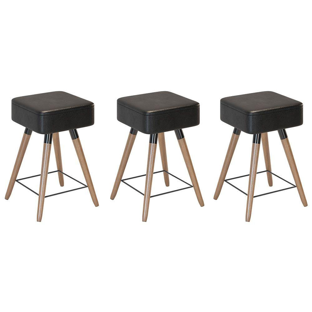 Kit 03 Banquetas Baixas Decorativas Rio 50x32cm Com Pés Palito Corano Preto - Desk Design