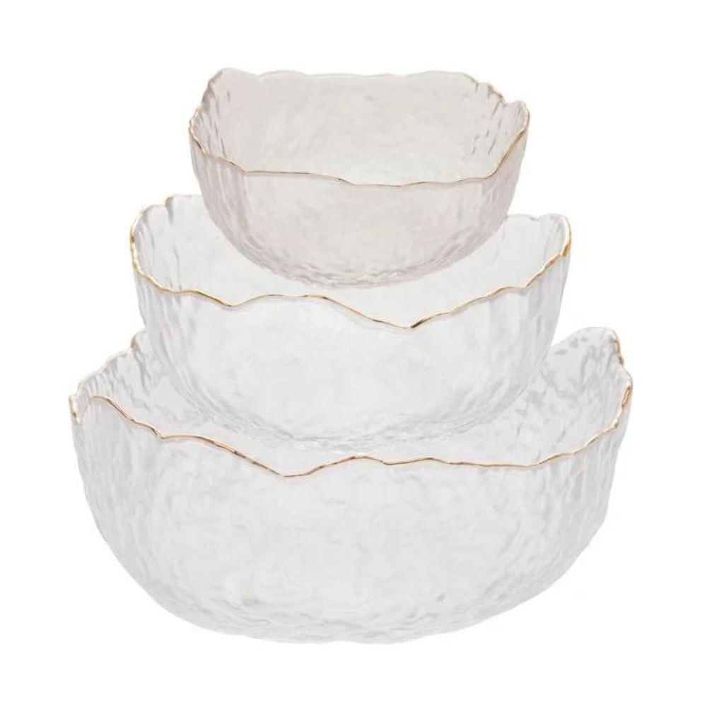 Kit 03 Bowls De Cristal Martelado Com Borda Dourada Taj Wolff