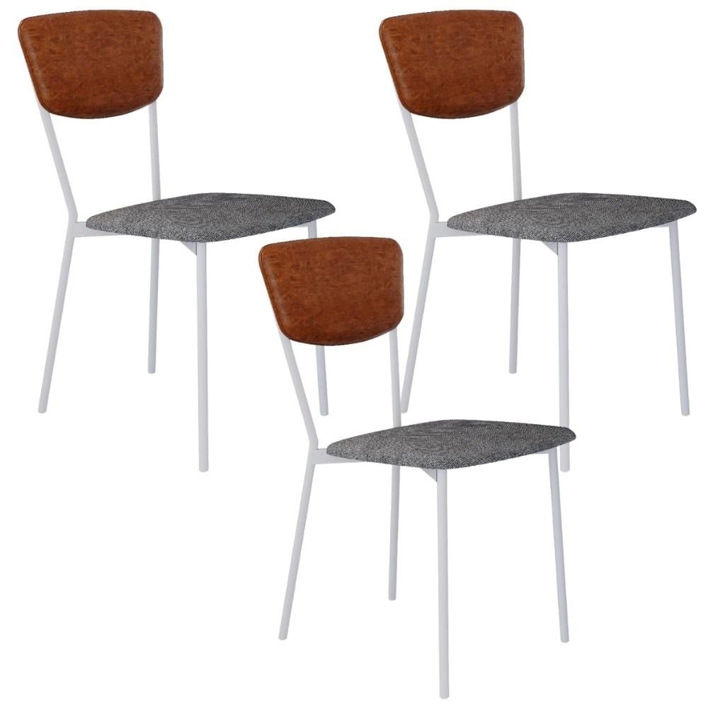 Kit 03 Cadeira Para Sala de Jantar Village Branco C01 Linho Prata Courino Caramelo - Lyam Decor