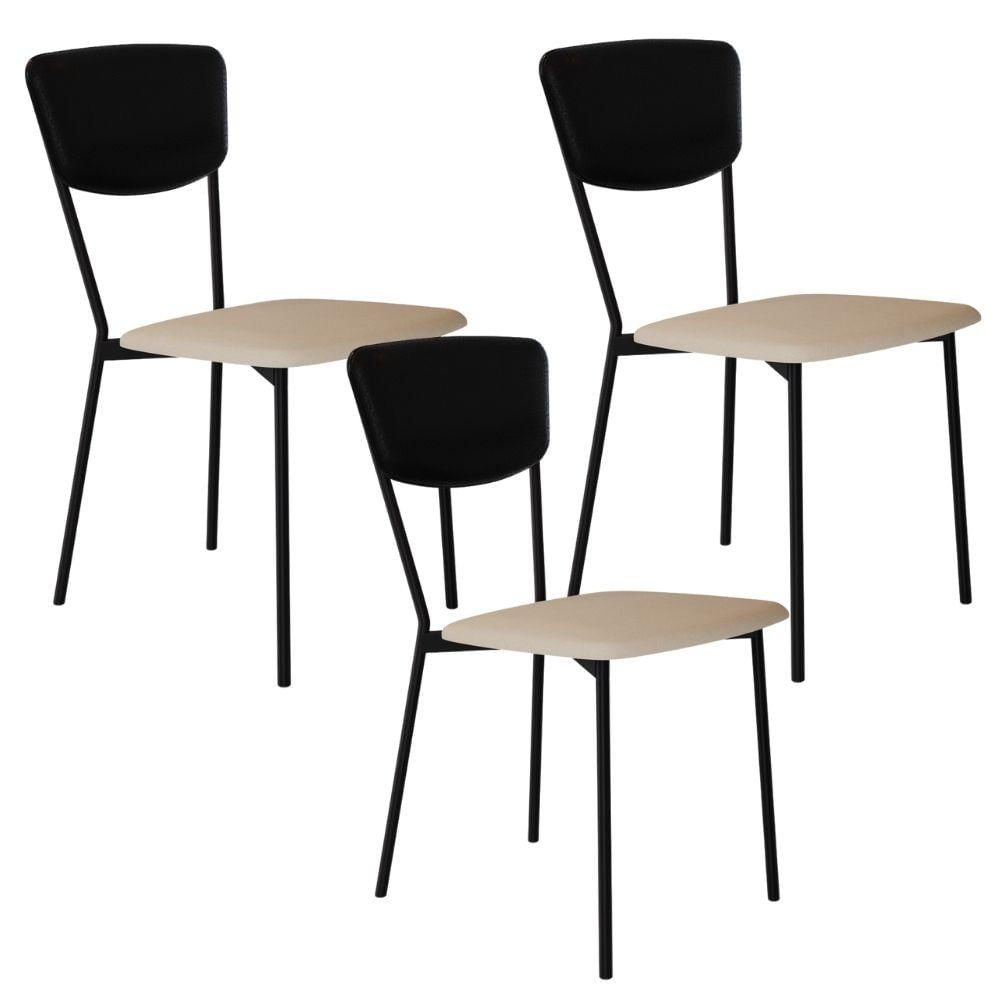 Kit 03 Cadeira Para Sala de Jantar Village Preto C01 Linho Areia Courino Preto - Lyam Decor