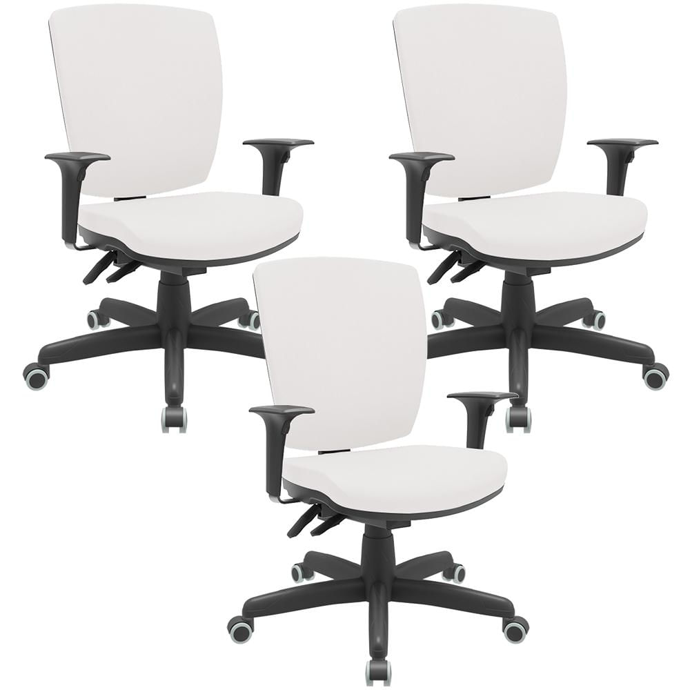 Kit 03 Cadeiras de Escritório Diretor Office Giratória Preto Alta Flexi P03 Vinil Branco - Lyam