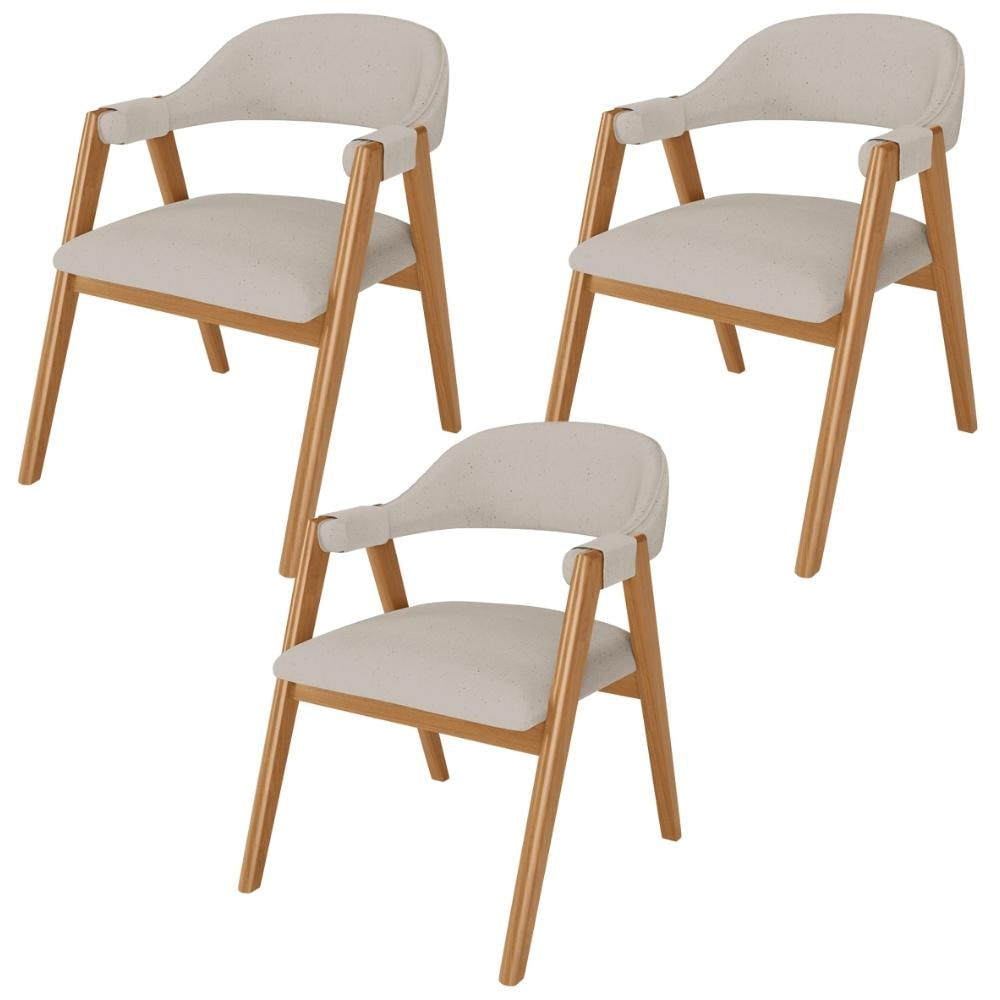 O Kit 03 Cadeiras de Jantar e Estar Living Estofada Nadja, das Lyam Decor, é a escolha perfeita para criar uma sala de jantar moderna e acolhedora. Com seu design curvo e pés de madeira maciça envernizada, essa cadeira estofada traz elegância e sofisticação ao ambiente. Além disso, é tapeçada com espuma d-26, o que proporciona um conforto excepcional, permitindo que você desfrute de momentos incríveis à mesa. Já o design orgânico combina beleza e modernidade, tornando-a uma peça única, enquanto os braços adicionam um toque extra de conforto e estilo. A Cadeira Nadja é o equilíbrio perfeito entre funcionalidade e design, uma vez que pode facilmente ser utilizada em diversos ambientes, como espaços comerciais, recepção de hotel e eventos, até como poltrona para sala de estar. Adicione esse elemento indispensável à sua decoração e transforme qualquer ambiente em um lugar especial. Não perca a oportunidade de adquirir essa cadeira de jantar que vai encantar a todos. Dimensões do produto (L x A x P)