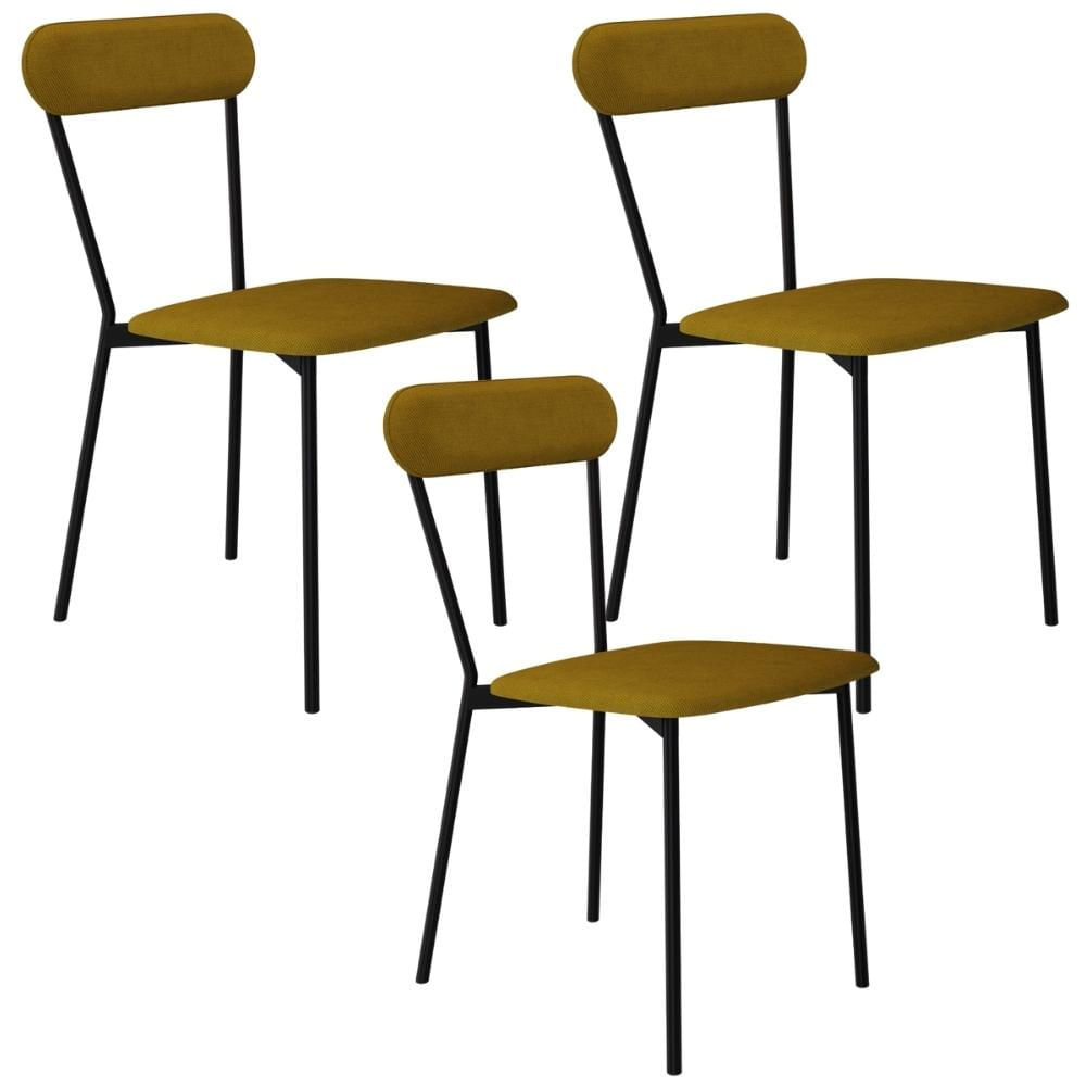 Kit 03 Cadeiras Estofada Para Sala de Jantar Liora Preto C01 Linho Mostarda - Lyam Decor